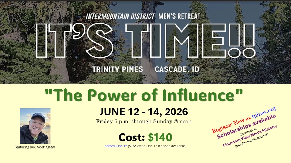 Register now at tpines.org, scholarships are available. Cost now is $140. Speaker is Rev. Scott Shaw, "The Power of Influence"